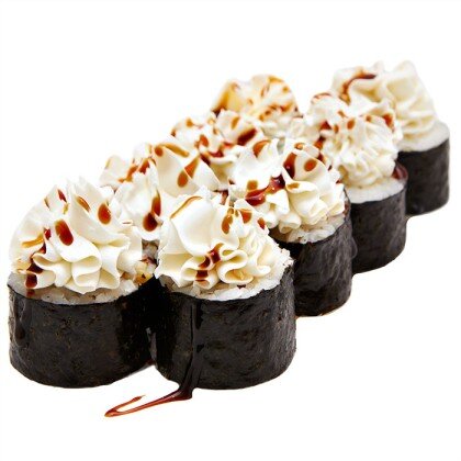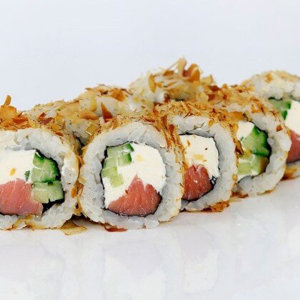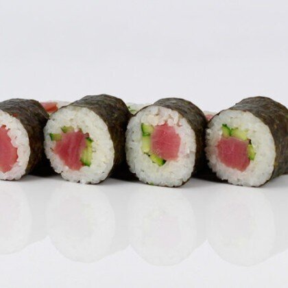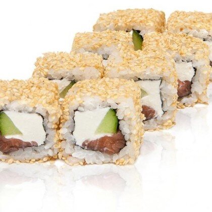 рис, нори, тунец, сыр сливочный, огурец, кунжут