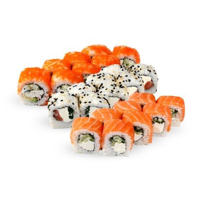 Филадельфия классика, Калифорния с лососем, Сегун с лососем, Маки (мини) с лососем